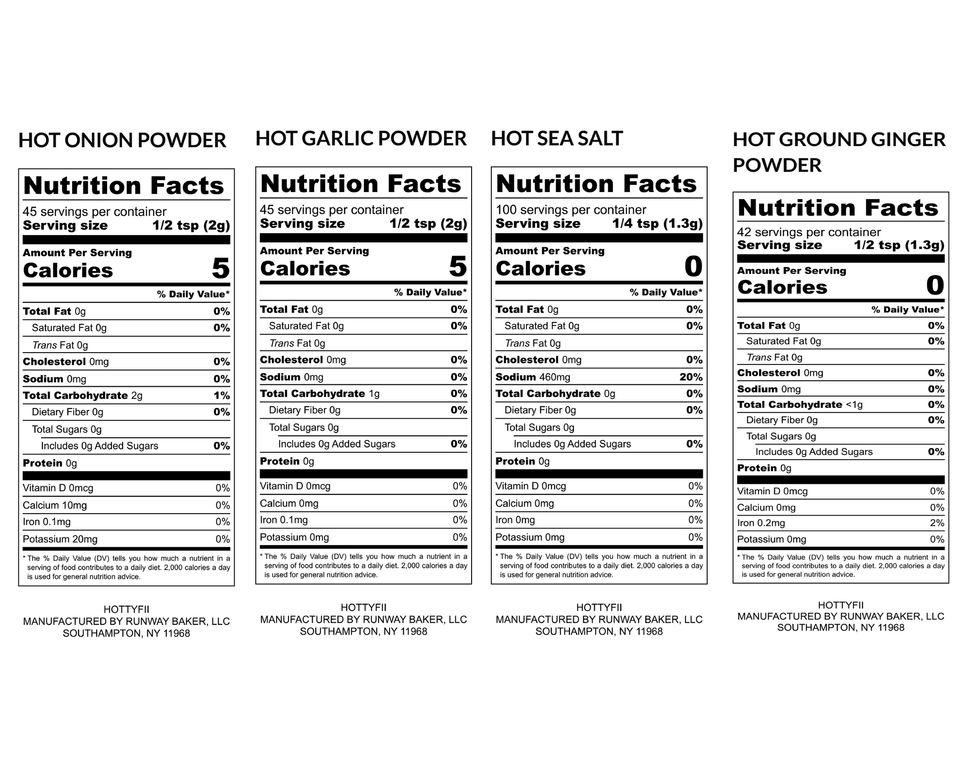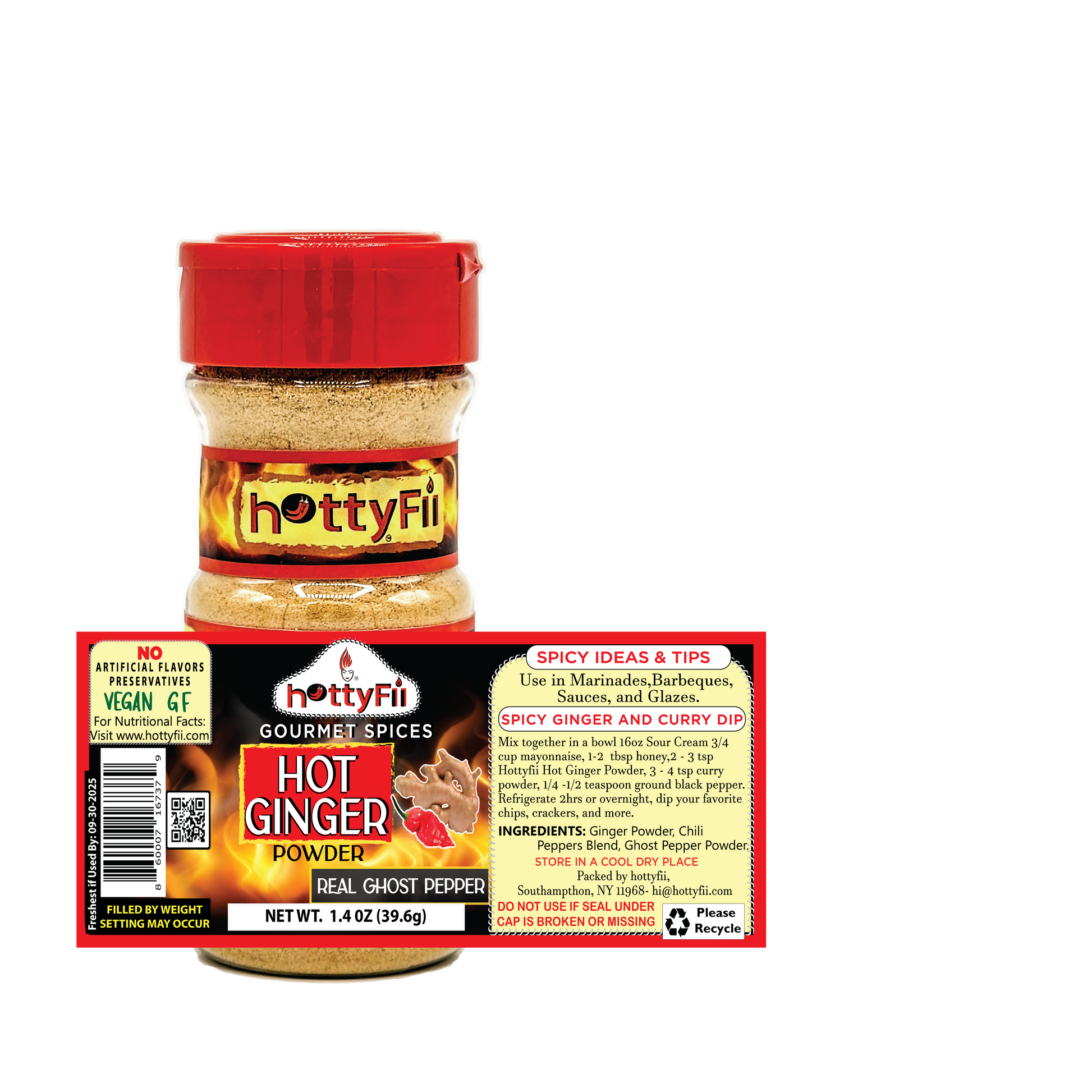 Ground Ginger Powder , Onion Powder, Garlic Powder, Pink Himalayan Sea Salt, Ghost Pepper Powder, and Chili Pepper Powder